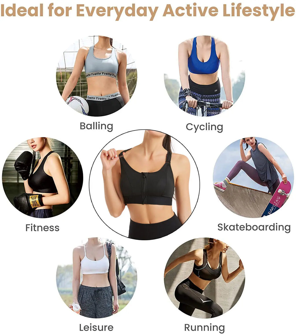 ALMOFADAS REMOVÍVEIS: Sutiã esportivo com zíper na frente e acolchoamento removível proporciona conforto de suporte e ajuste personalizável.Adequado para copo A B C D para peito pequeno ou busto/senos grandes.Cobertura total de camada dupla, sem fio para maior conforto e costuras planas reduzem o atrito.Este sutiã esportivo com fecho frontal será o seu sutiã esportivo essencial favorito!